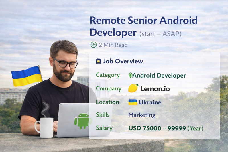 Are you a highly skilled Senior Android Developer searching for a remote job that allows you to not only showcase your talents but also earn a competitive income? Look no further, because Lemon.io is here to connect you with a network of hand-picked startups that are eagerly looking for developers just like you!